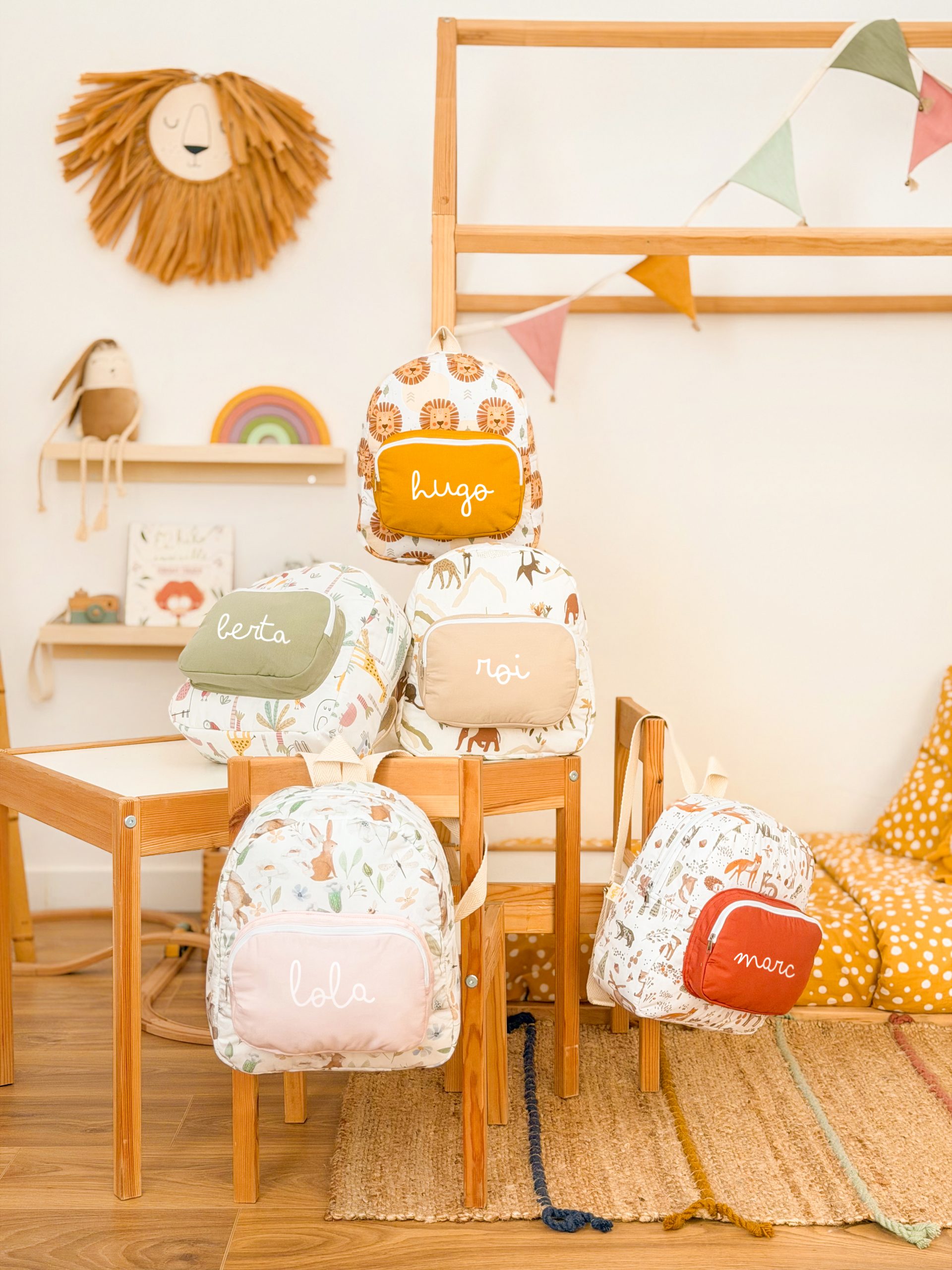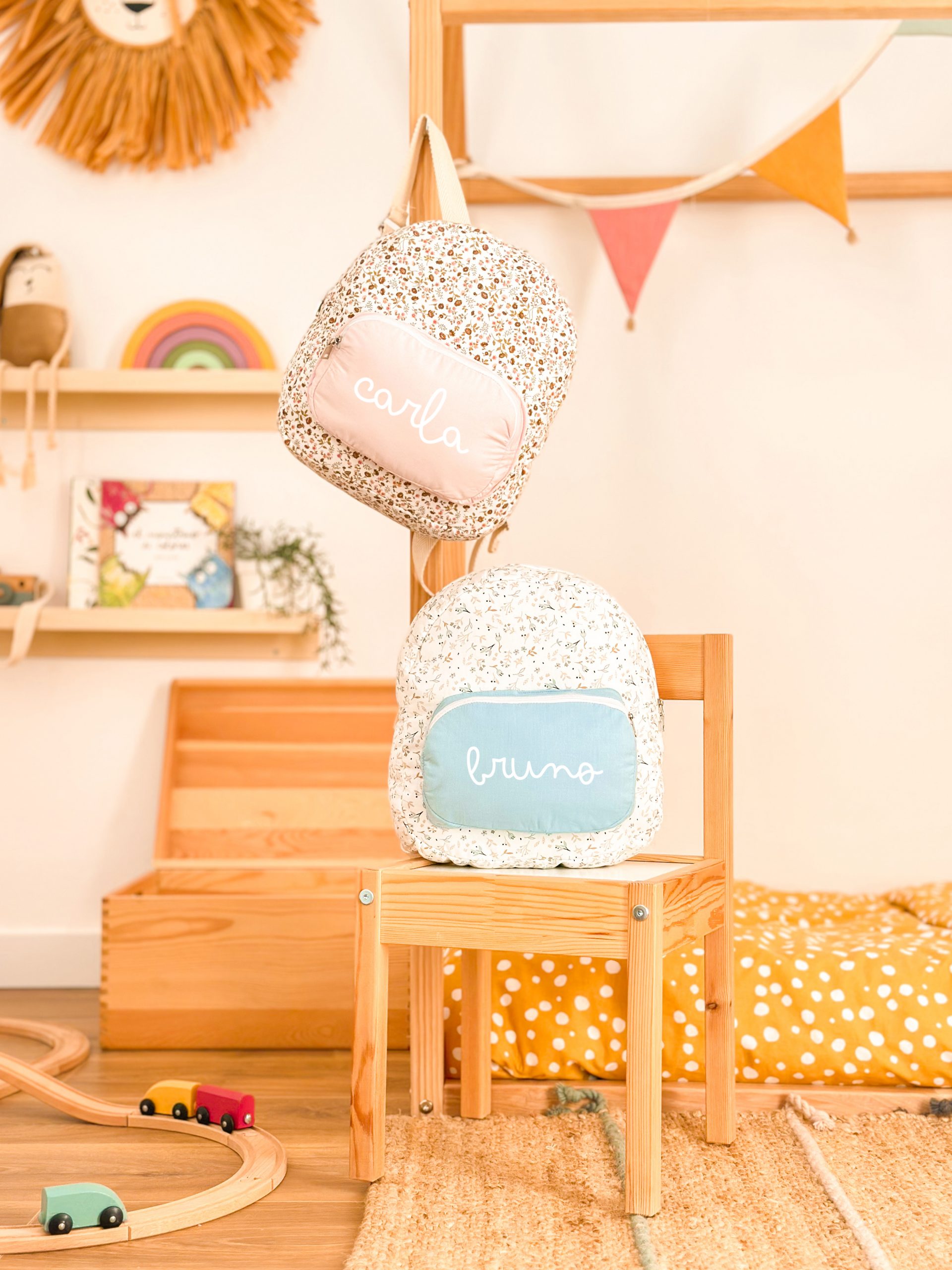 Hecha en el taller Hilocreations desde 0, pensada para peques con ganas de explorar el mundo y para familias que adoran el diseño bonito y práctico 💛.